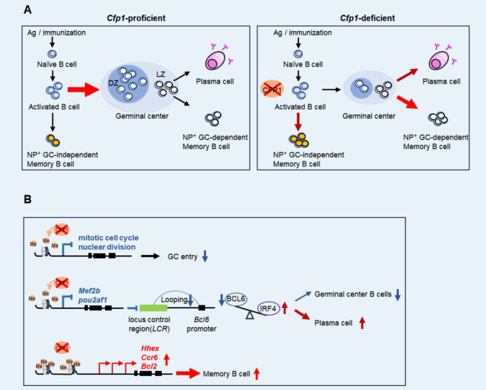 Nat Commun | 博彩公司排名 董俊超教授团队发现组蛋白甲基转移酶组分CFP1调控B细胞生发中心命运走向的分子机制