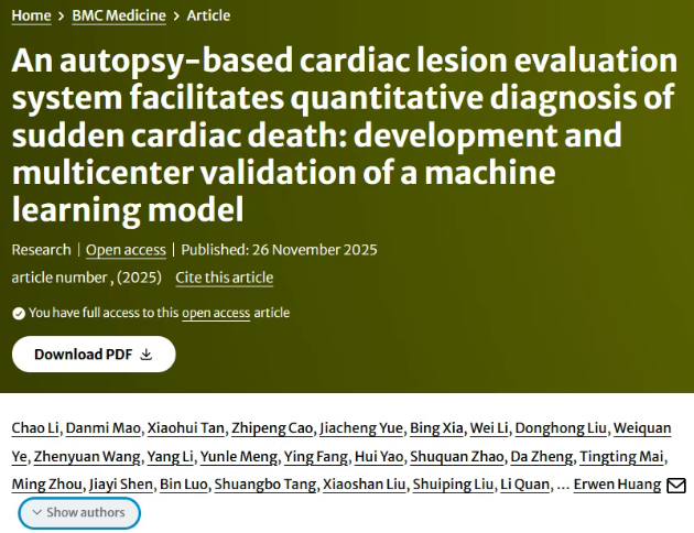 近日,博彩公司排名 本科生李超以排名第一共同第一作者在中科院大类一区TOP期刊BMC Medicine上发表题为《An Autopsy-Based Cardiac Lesion Evaluation System Facilitates Quantitative Diagnosis of Sudden Cardiac Death: Development and Multicenter Validation of a Machine Learning Model》的研究论文。