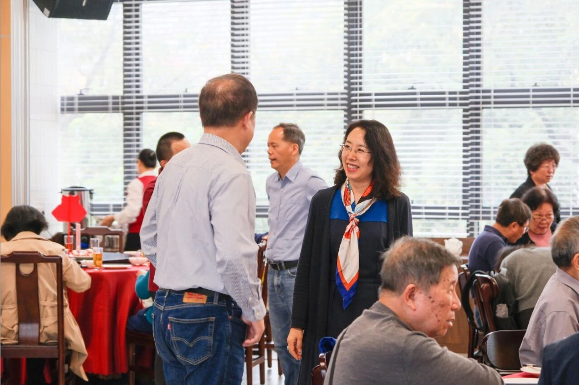 致辞结束后,学院领导班子及党委委员逐一上台,向在场教职工送上节日的问候与美好祝福。随后,集体向每一桌的老同志敬茶致意,气氛温馨热烈。
