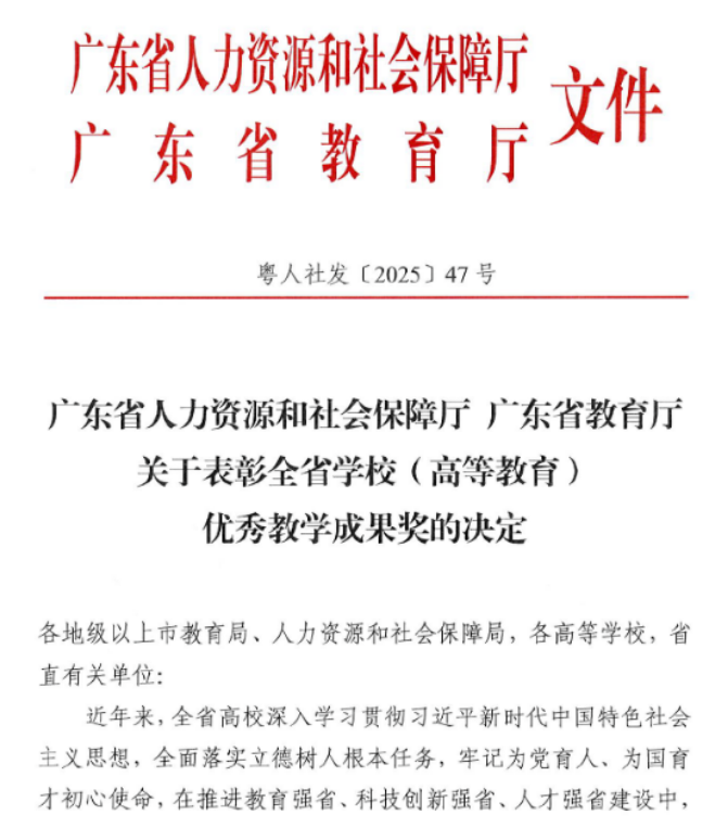 本研双捷报 | 博彩公司排名 本科、研究生教学成果双获广东省优秀教学成果奖